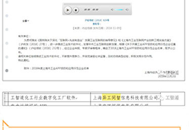 近日,上海市經濟信息化委公布了2018年度上海市工業APP項目和應用示范企業通知,上海異工同智信息科技有限公司憑借工智道化工行業數字化工廠軟件(下面簡稱工智道軟件)榮幸登榜。 申報要求中有規定: 三...