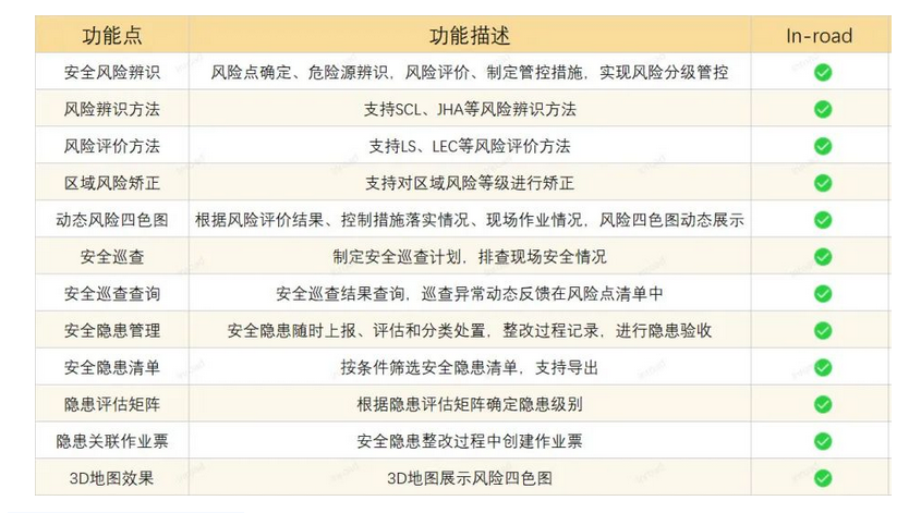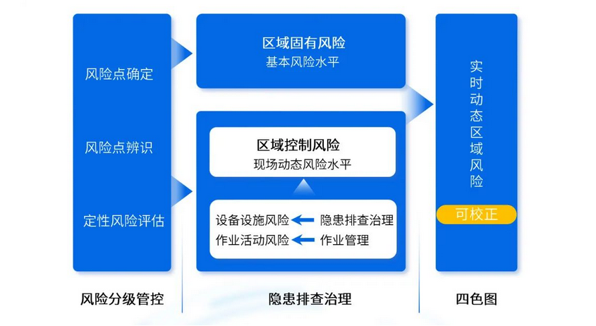 工智道雙重預(yù)防機(jī)制(安全風(fēng)險(xiǎn)分級管控和隱患排查治理),包括:風(fēng)險(xiǎn)辨識+安全巡查+隱患管理三個(gè)功能模塊;在融合相關(guān)法律法規(guī)要求的前提下,結(jié)合國內(nèi)國際先進(jìn)企業(yè)的經(jīng)驗(yàn),將雙預(yù)控與安全標(biāo)準(zhǔn)化有機(jī)的結(jié)合在一起,實(shí)現(xiàn)了風(fēng)險(xiǎn)管理分級、分區(qū)、定性、定量,動態(tài)閉環(huán)管理。