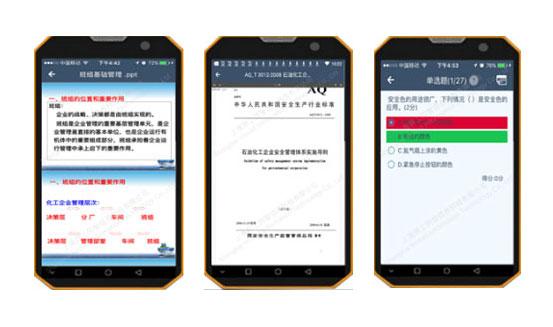 “安全管理,教育先行”,化工廠有著人員較多,部門工種復(fù)雜,流動較大,倒班制度的特點,導(dǎo)致在企業(yè)內(nèi)部集中培訓(xùn)難度較大,需要開展的培訓(xùn)種類繁多,培訓(xùn)效果難以評價,培訓(xùn)結(jié)果難以跟蹤,難以匯總統(tǒng)計的情況。 工智道培訓(xùn)管理基于移動技術(shù),可幫助企業(yè)員工隨時隨地接受精準(zhǔn)、個性化的培訓(xùn)及測驗,輔助管理人員跟蹤員工的培訓(xùn)過程和效果,讓培訓(xùn)更及時、更可控。