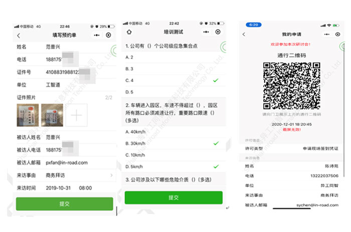 工智道智能訪客系統基于微信小程序為工廠及訪客提供一套便利的智能訪客管理工具。為訪客提供預約和進廠HSE培訓,讓訪客更便捷地出入化工廠,提升化工廠對外界訪客形象;同時對內,提升訪客來訪工作的效率和規范程度,提升HSE的管理水平。工智道智能訪客系統廣泛適用于各類化工生產企業。