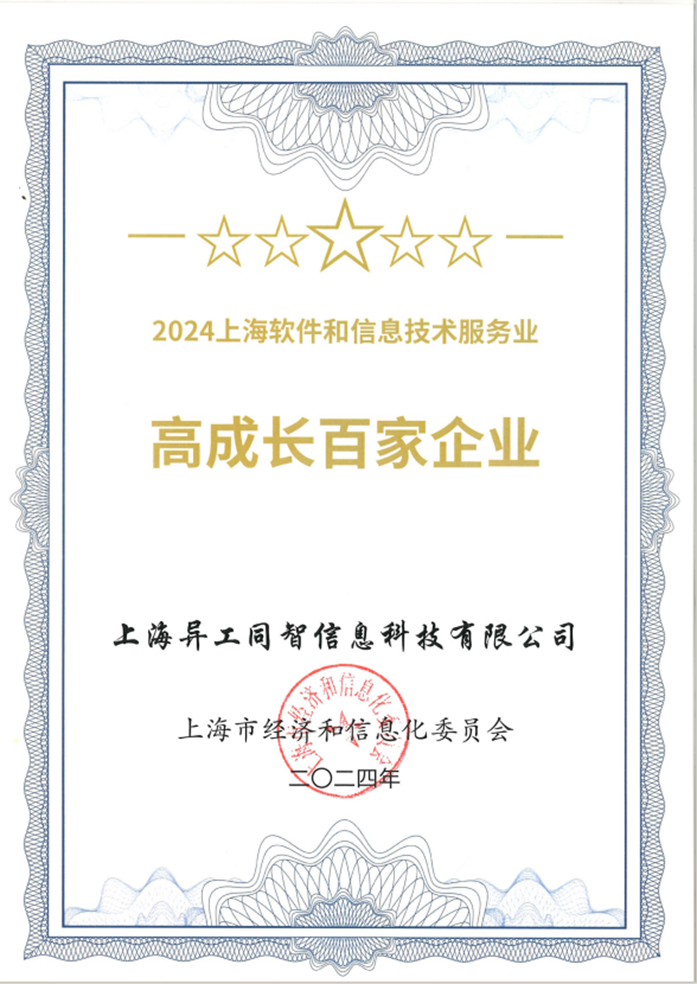 12月19日,上海市經(jīng)濟和信息化委員會發(fā)布了 2024 上海軟件和信息技術(shù)服務(wù)業(yè) “雙百” 名單,異工同智 – 工智道憑借在化工數(shù)字化領(lǐng)域的深厚積累與強勁發(fā)展勢頭,成功入選 “上海軟件和信息技術(shù)服務(wù)業(yè)高成長百家企業(yè)” 榜單,位列第 35 名。