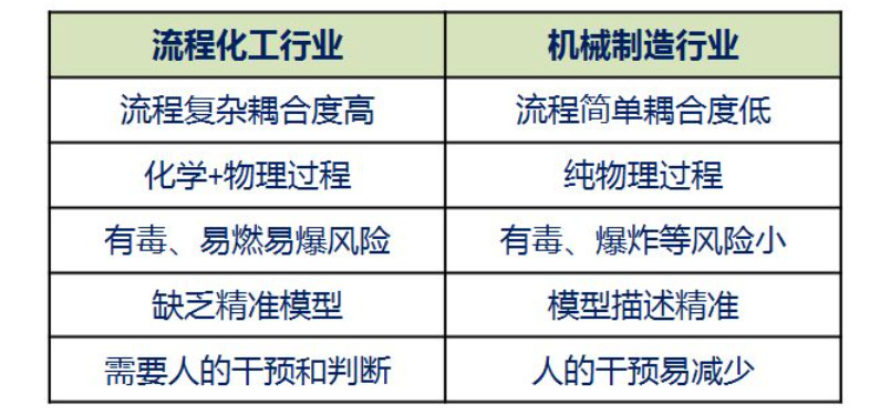 這兩個本質的區別決定了流程化工行業難以簡單移植在機械制造行業中業已實現的高柔性、高可靠性、無人值守的智能工廠方案。