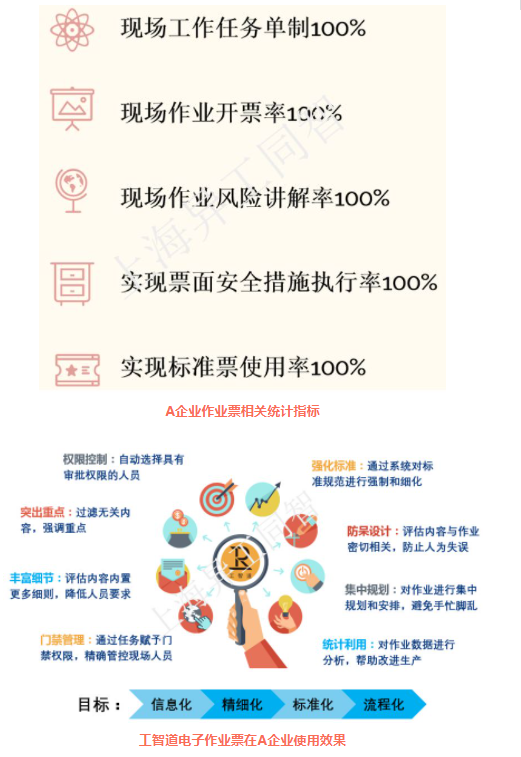 工智道電子作業票管理系統融合《GB30871-2014化學品生產單位特殊作業安全規范》,融入行業先進管理經驗,通過流程優化將現有作業申請單、特殊作業許可證和安全交底單業務內容數字化,轉化為安全作業許可電子化業務流程(電子作業票),實現全業務覆蓋、高標準評價體系、全局管控可視化的數字化作業管理。