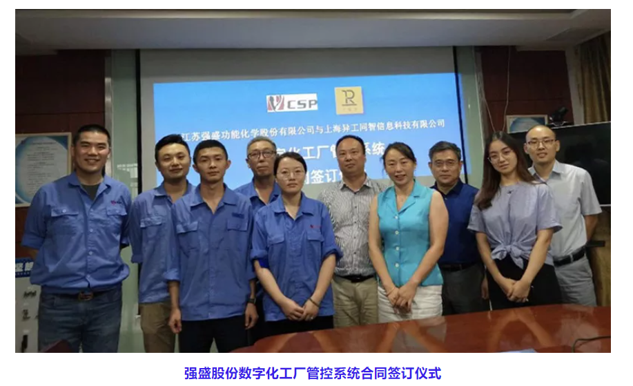 金秋季節(jié),上海異工同智信息科技有限公司與江蘇強(qiáng)盛功能化學(xué)股份有限公司(股票代碼:831184)、江蘇南大光電材料股份有限公司(股票代碼:300346)分別簽訂“工智道數(shù)字化工廠管控系統(tǒng)”許可合同,與精細(xì)化工行業(yè)的兩家代表性企業(yè)奠定堅(jiān)實(shí)的戰(zhàn)略合作基礎(chǔ)。