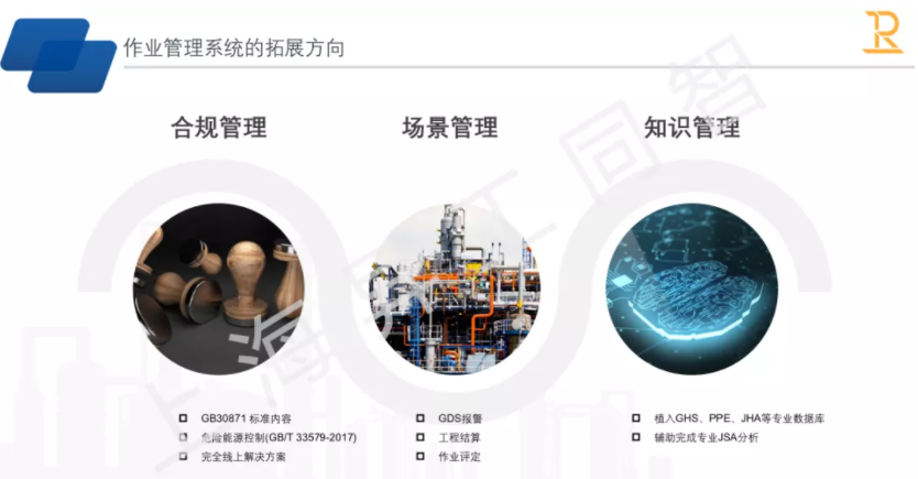 上海異工同智產(chǎn)品經(jīng)理?xiàng)盍至纸榻B了“打造國內(nèi)外安全智能作業(yè)管理系統(tǒng)——作業(yè)管理系統(tǒng)的智能化拓展”,從合規(guī)管理、場景管理、知識(shí)管理等三方面進(jìn)行升級,實(shí)現(xiàn)全方位的、更加專業(yè)、完善的安全作業(yè)管理系統(tǒng)。