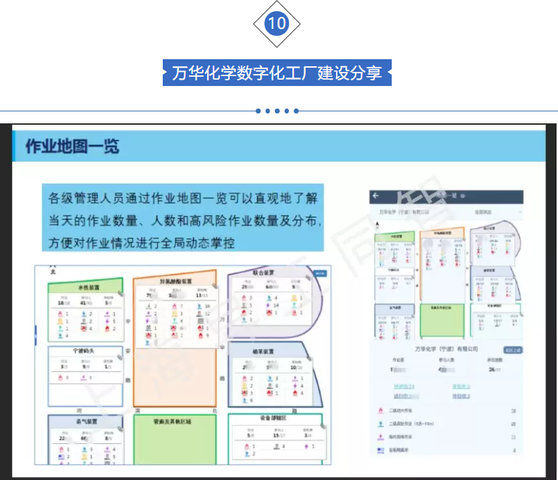 萬華化學(xué)(寧波)有限公司分享了“PTW電子化系統(tǒng)建設(shè)經(jīng)驗(yàn)“,融合《GB30871-2014化學(xué)品生產(chǎn)單位特殊作業(yè)安全規(guī)范》,融入行業(yè)先進(jìn)管理經(jīng)驗(yàn),通過流程優(yōu)化將現(xiàn)有作業(yè)申請單、特殊作業(yè)許可證和安全交底單業(yè)務(wù)內(nèi)容融合,搭建標(biāo)準(zhǔn)化的安全作業(yè)許可電子化業(yè)務(wù)流程(電子作業(yè)票),實(shí)現(xiàn)八大票證的快速審批、全業(yè)務(wù)覆蓋、高標(biāo)準(zhǔn)評價(jià)體系、安全風(fēng)險(xiǎn)全局管控的、可視化、標(biāo)準(zhǔn)化的作業(yè)管理,提高作業(yè)效率。
