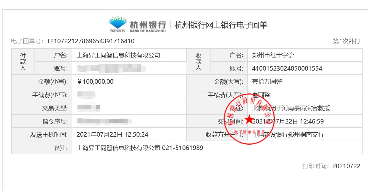 近日,河南省遭遇極端暴雨天氣導致的鄭州等多地嚴重洪澇災害,風雨同舟,共渡難關,上海異工同智向鄭州市紅十字會捐款10萬元,用于支持當地抗災、救災工作。